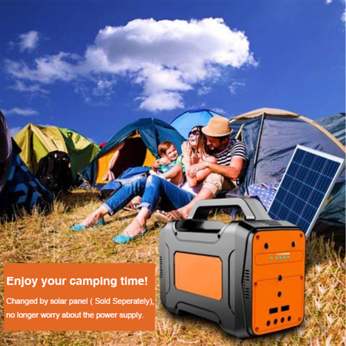 Þegar þú ferð í útilegu með fjölskyldunni þarftu bara örugga, færanlega rafstöð til að sjá þér fyrir rafmagni. Og einnig er hægt að hlaða það með sólarorku.