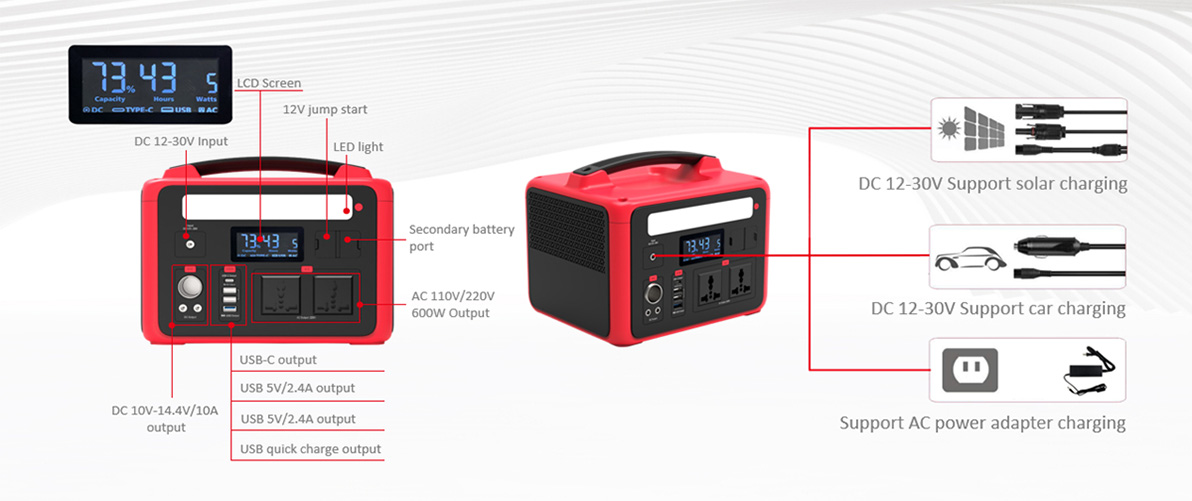 Þessi 600W hörku flytjanlega aflstöð fyrir farsímahleðslu er auðveld að bera, nægjanlegt afl, gerir þér kleift að ferðast í tísku, en hefur einnig ýmsar aðgerðir og margar úttakstengi. Það sem meira er, það er hægt að hlaða það með sólarorku og getur hlaðið bíl. Við erum leiðandi alþjóðlegur veitandi faglegra lausna fyrir græna orku. Við hópur stofnað árið 1998 og skráð á aðalstjórn Hong Kong árið 2010, sem sérhæfir sig í nýjum orkurannsóknum og þróun, framleiðslu, rekstri og þjónustu. Þróun og vöxtur á undanförnum 20 árum höfum við unnið viðurkenningu markaðarins og traust neytenda.